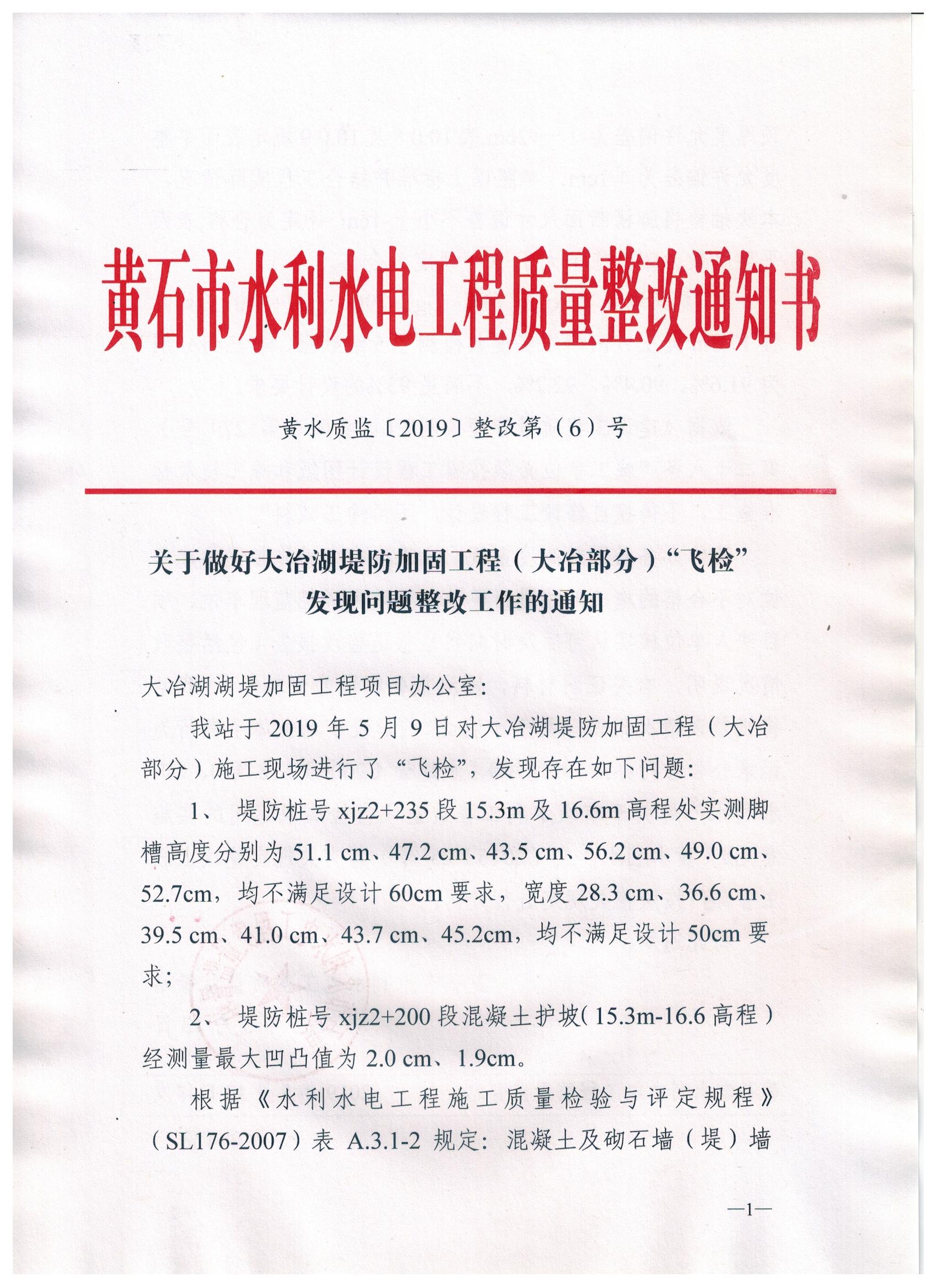 关于做好大冶湖堤防加固工程(大冶部分)“飞检”发现问题整改工作的通知