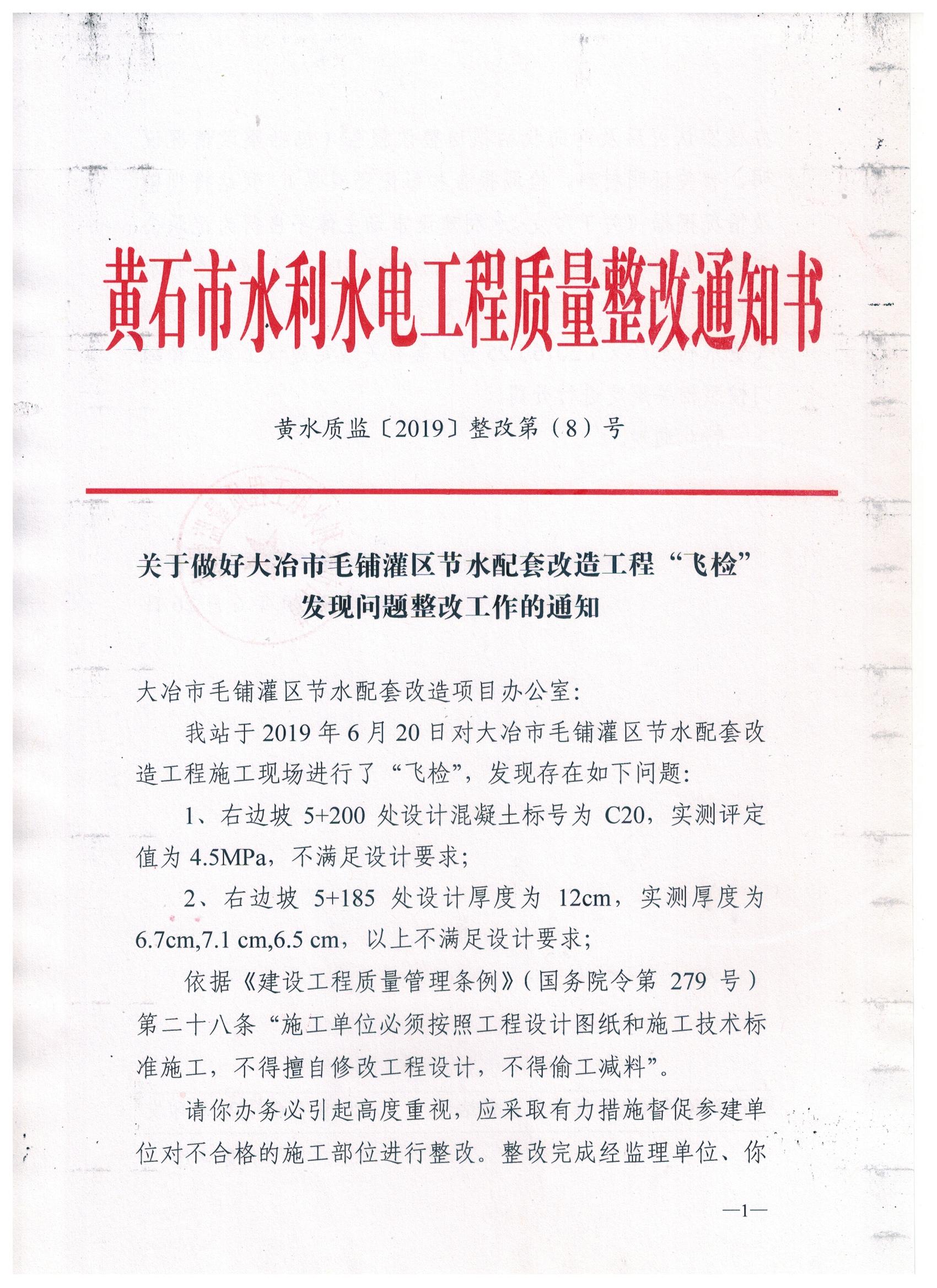 关于做好大冶市毛铺灌区节水配套改造工程“飞检”发现问题整改工作的通知