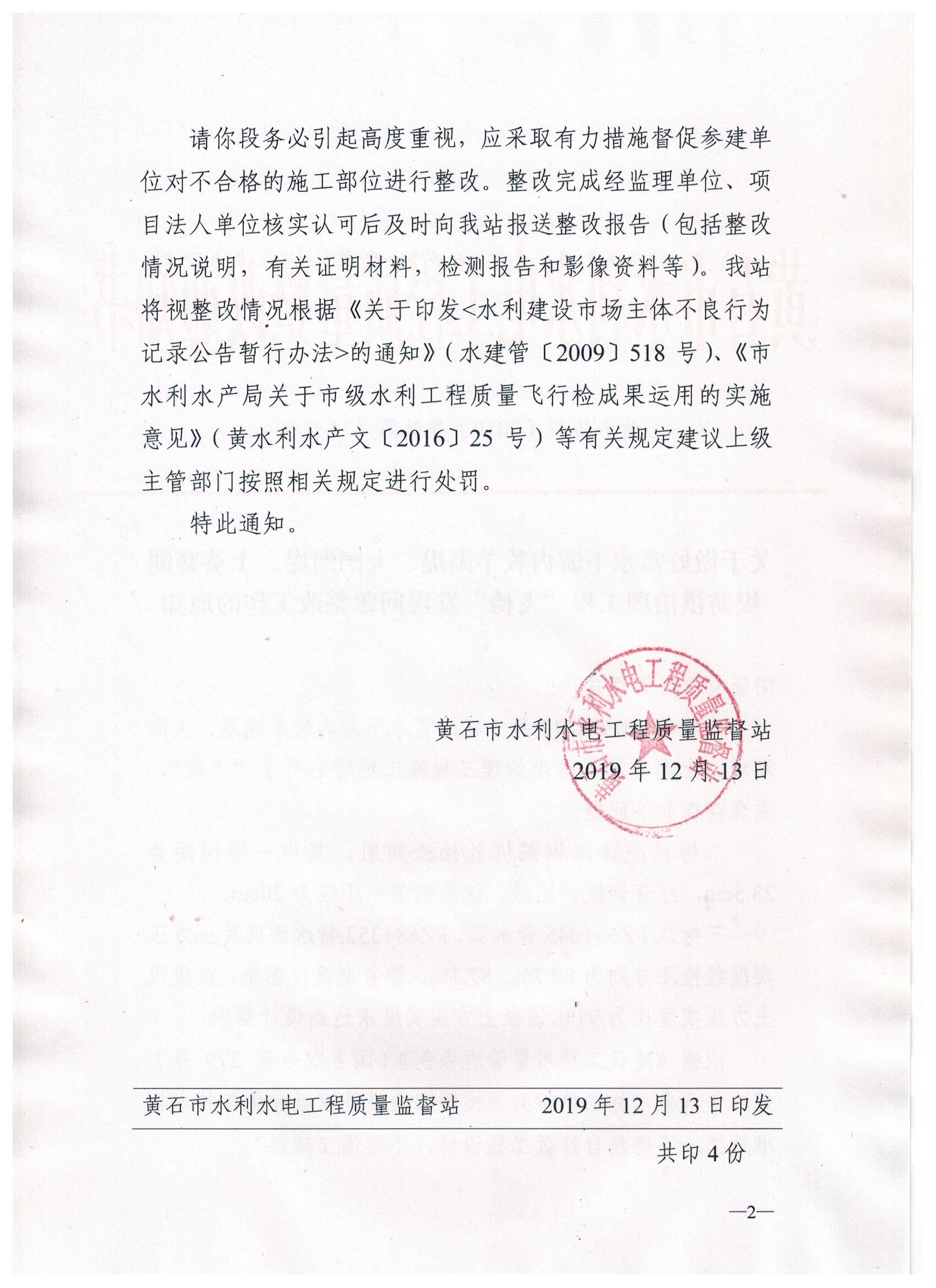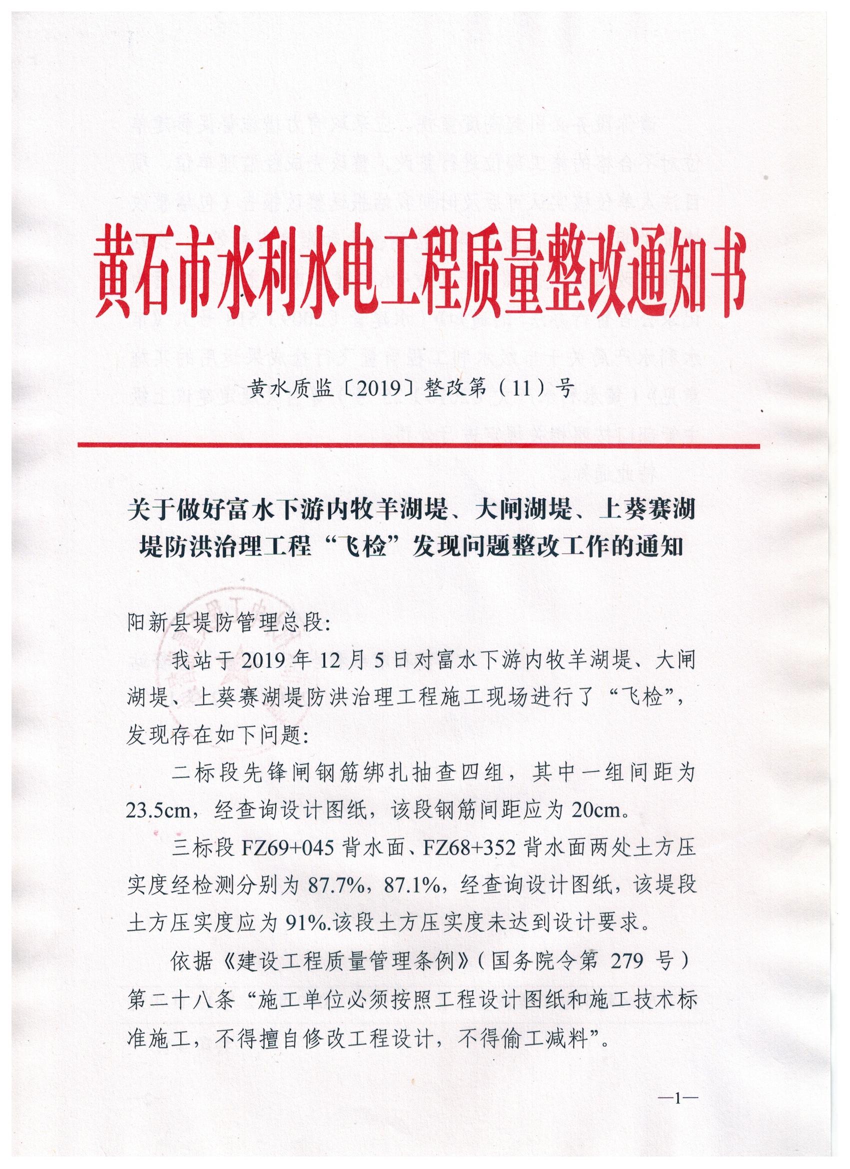 富水下游干流防洪治理近期工程2019年度项目飞检整改通知书