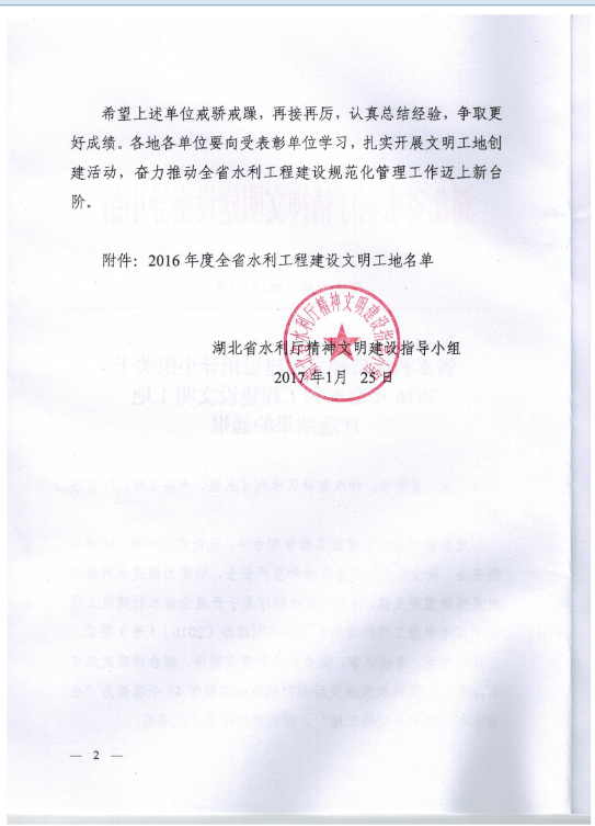 省水利厅精神文明建设指导小组关于2016年度水利工程建设文明工地评选结果的通报