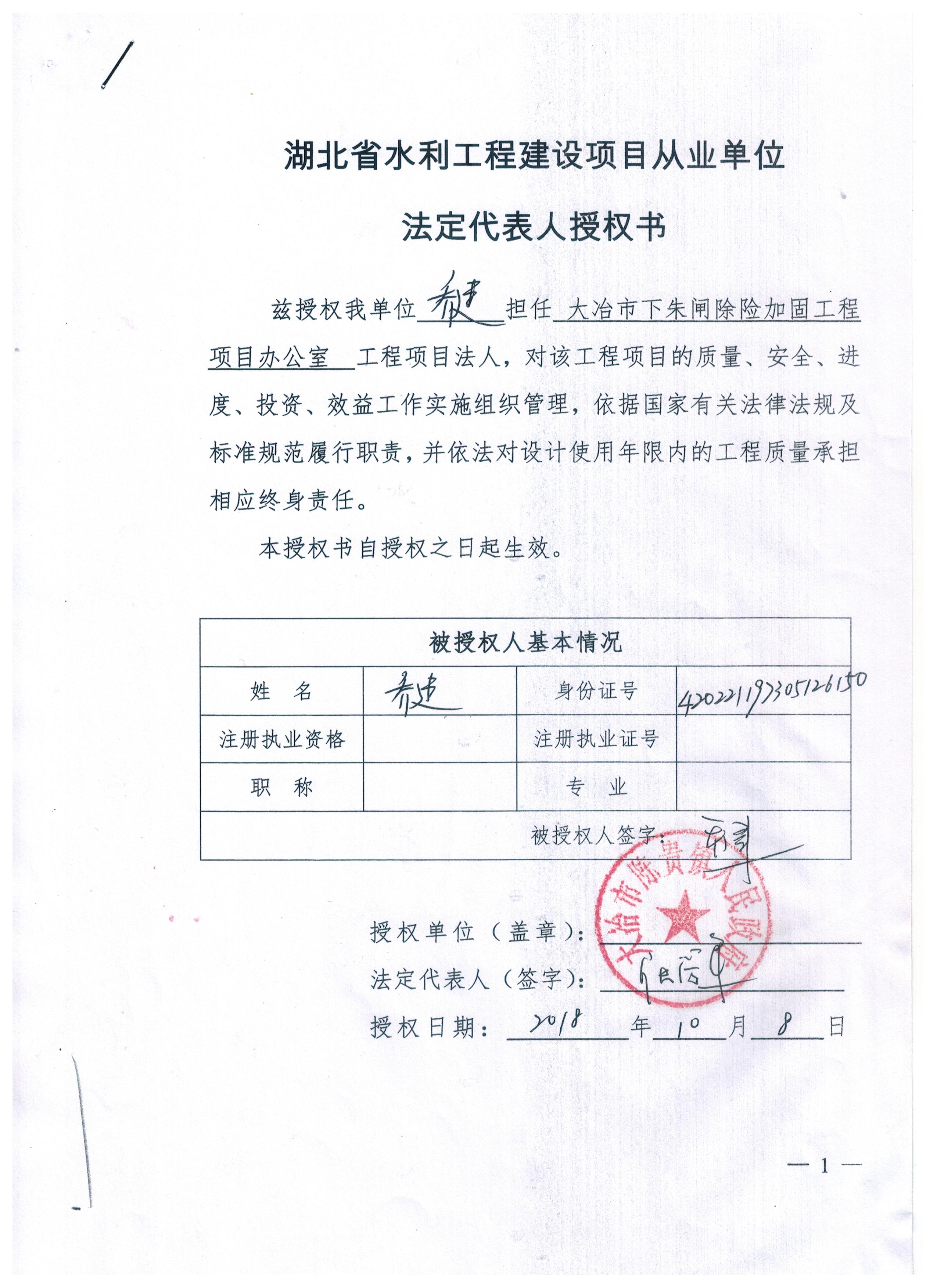 大冶市下朱闸除险加固工程质量终身责任制公示