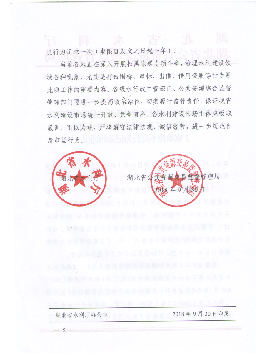 湖北省水利厅 湖北省公共资源交易监督管理局关于给予江苏金洋造船有限公司等2家单位不良行为记录的通报