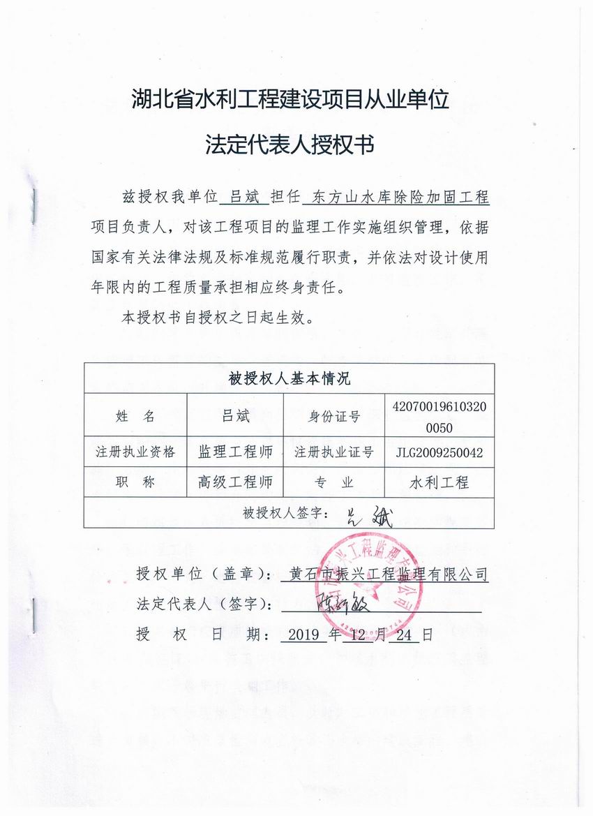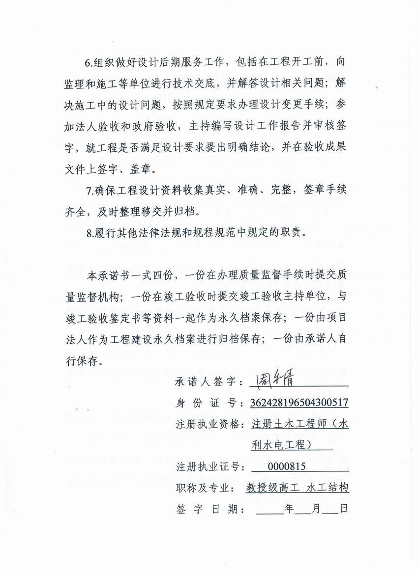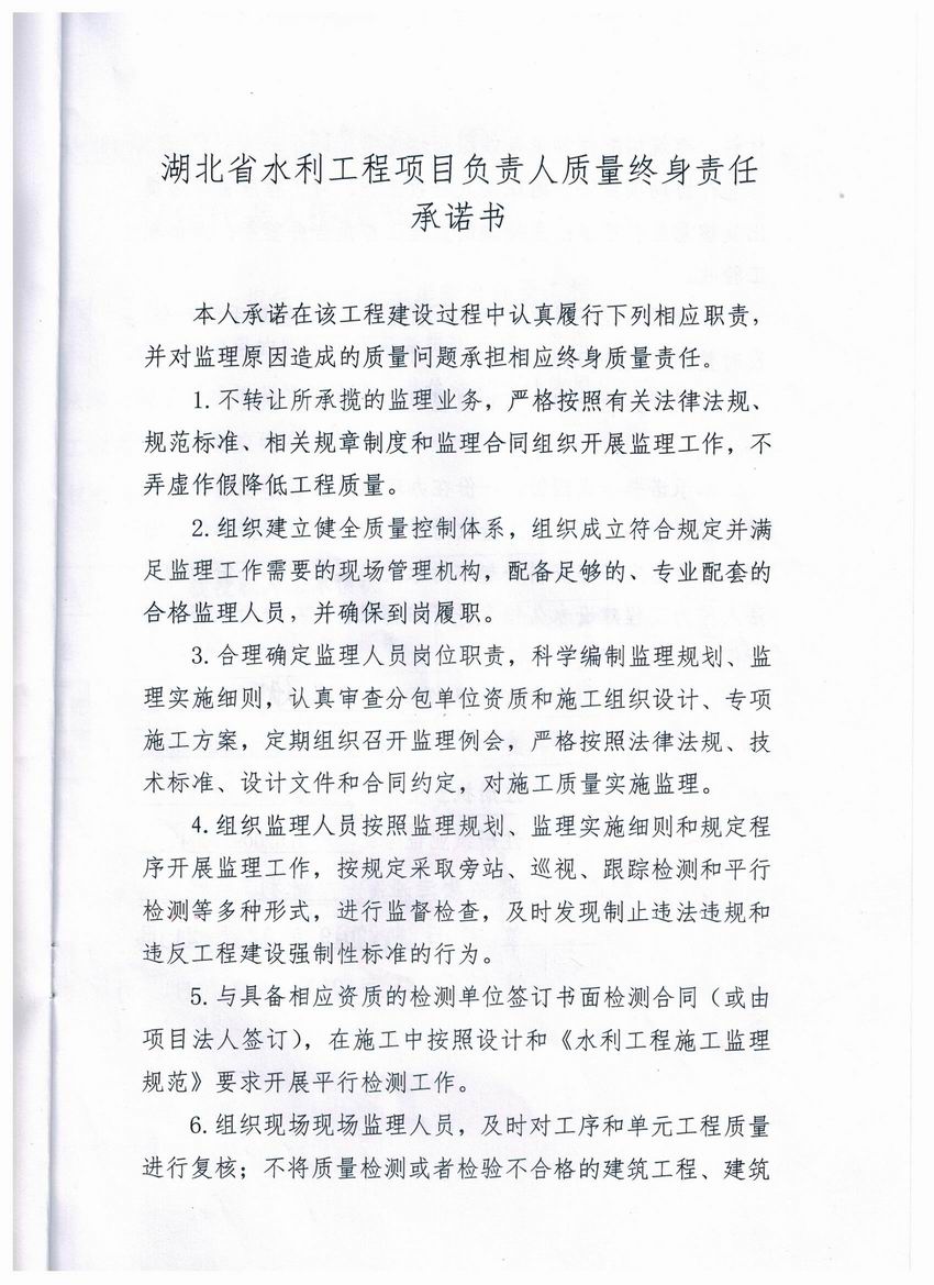 东方山水库除险加固工程质量终身责任制承诺书公示